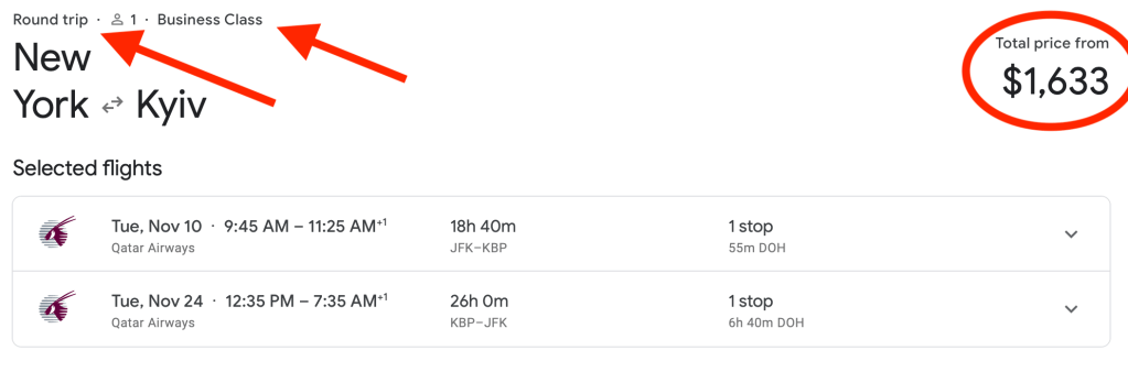 After reading this announcement, two routes immediately came to mind…New York (JFK) to Kyiv (KBP) and Philadelphia (PHL) to Kiev (KBP). These are two well-known US “sweet spots” with roundtrip business class fares generally running around $1600.