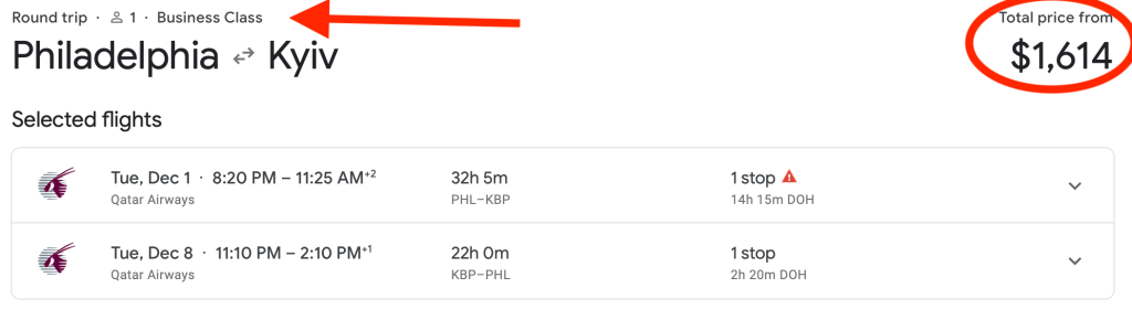 In other words, I could now fly from Philadelphia to the Maldives (via Doha) for ~$1600 roundtrip in business class.