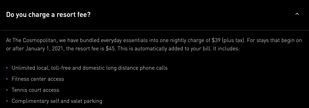 If you’re not familiar with “resort fees,” they are daily, supplementary charges that are NOT included in the initial booking cost. These fees apply regardless to if you booked via a third party (e.g. Expedia, Orbitz, etc.) or directly through the hotel website.