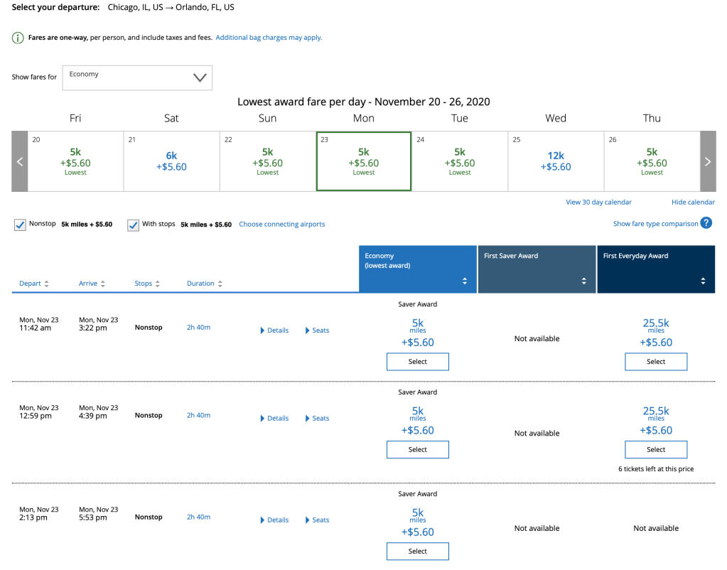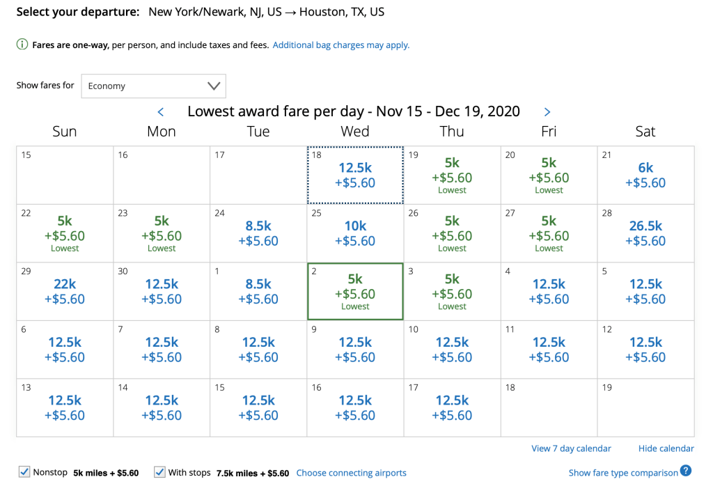 I admit that I have not searched every city pair but if you have plans to travel on United, I would recommend taking a quick look at the United Award calendar to see if any reduced awards are being offered. It’s hard to beat 7,500 miles for a transcontinental flight.
