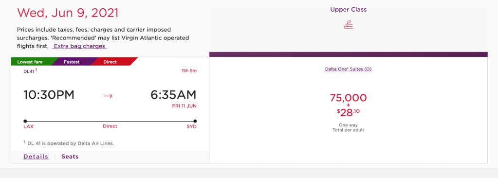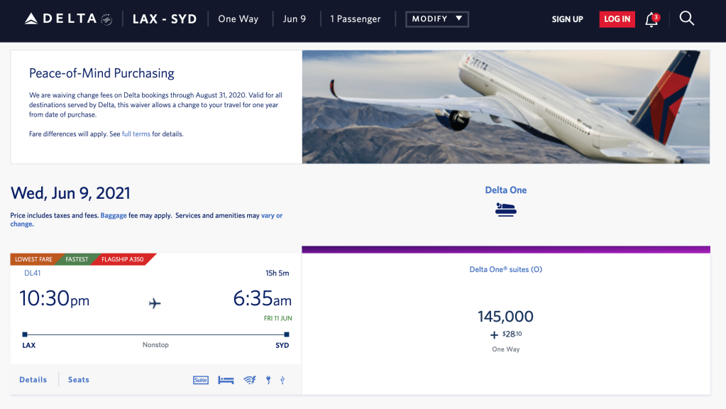 I’m considering booking this flight because I have never been to Australia, reviewing Delta One Suites on the A350 is one of my goals, and 75k for 15 hours of flight time is a solid redemption. However, there are some considerations to be aware of if you’re interested in booking this flight.