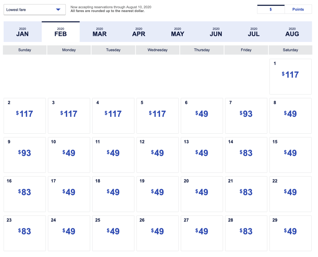 IMPORTANT NOTE: Southwest uses a revenue-based award chart, which means that if the cash price decreases, then the price in points drops too.