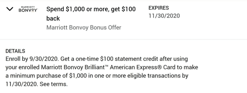 Right now, American Express Marriott Bonvoy cardholders are being offered a $100 credit after spending $1000 anywhere. It appears to be targeted as I was easily able to find it on my card but a family member was unable to find it on her card.
