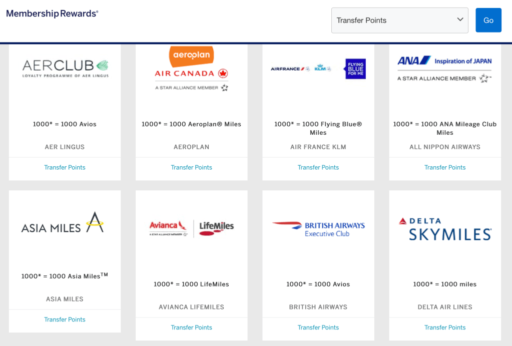 Note: If it is your first time visiting this page, you will have to link your frequent flyer accounts with Amex. If you do not have a frequent flyer / membership number to the 22 program listed above, I recommend you sign up today. It’s free and you’ll thank me later.