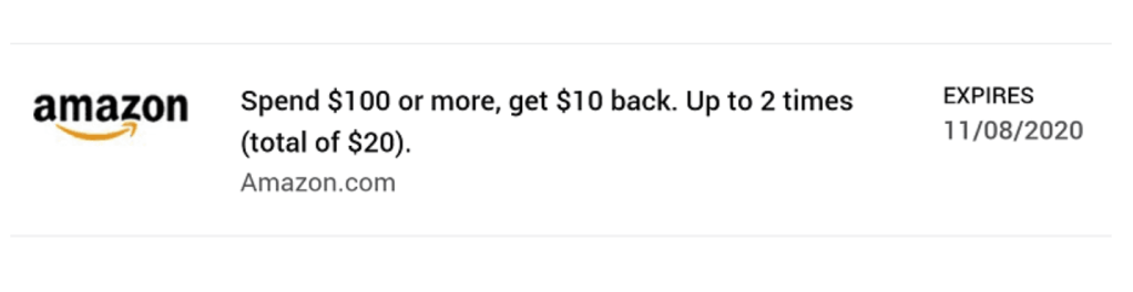 Currently, there’s a new targeted Amex Offer for $10 back when you spend $100 at Amazon and this offer can be used twice.