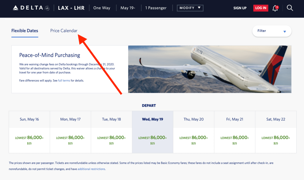 STEP 3: Select the Price Calendar to see a 30-day view.