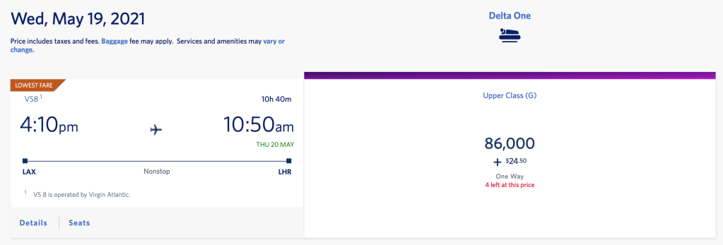 We’ve spoken several times about the sweet spot of redeeming Virgin Flying Club miles to fly on Delta planes, but we haven’t spoken much about using the other sweet spot….redeeming Delta SkyMiles to fly on Virgin Atlantic planes.