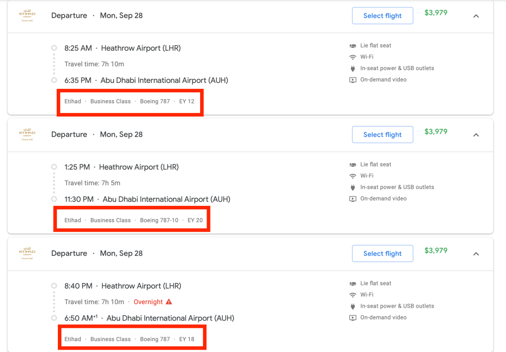 It’s worth noting that Etihads First class apartment is only found on the A380, so I had to complete additional research to determine when Etihad would replace the 787s with an A380.
