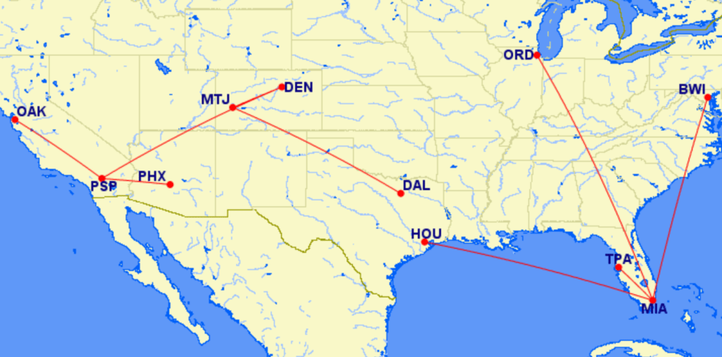 Southwest plans to start service on 4 new routes from Miami (MIA), including: