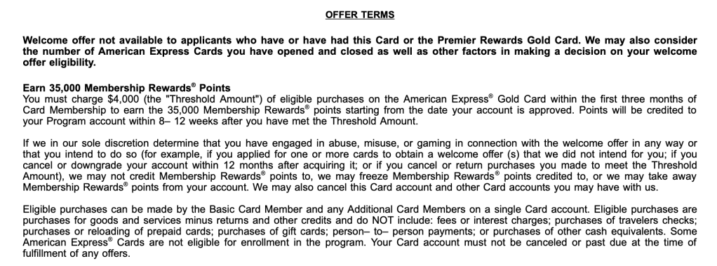 After you click on the benefit terms, more times than not, the fine print on an Amex credit card states “Welcome offer not available to applicants who have or have had this Card or previous versions.”