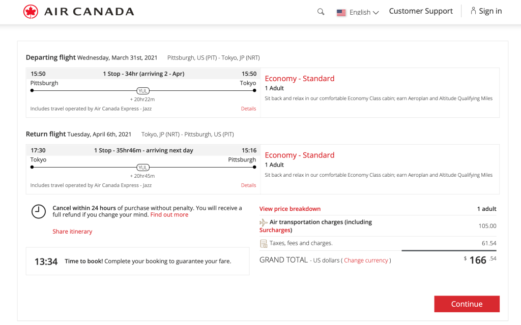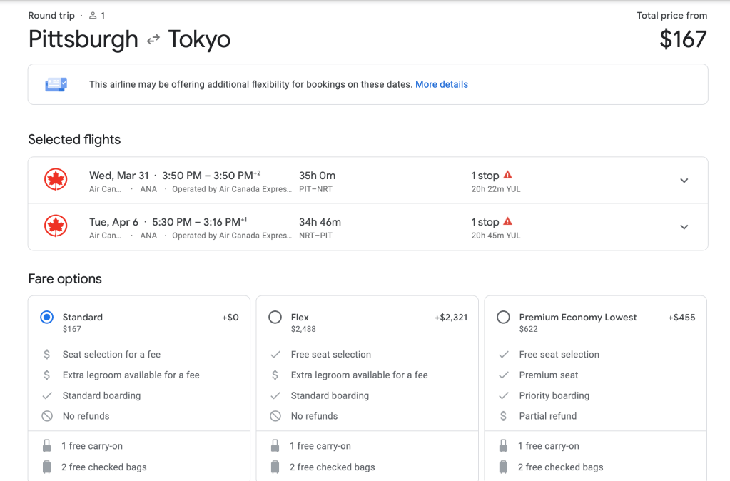 Roundtrip, economy ticket from Pittsburgh to Tokyo (via google flights)…
