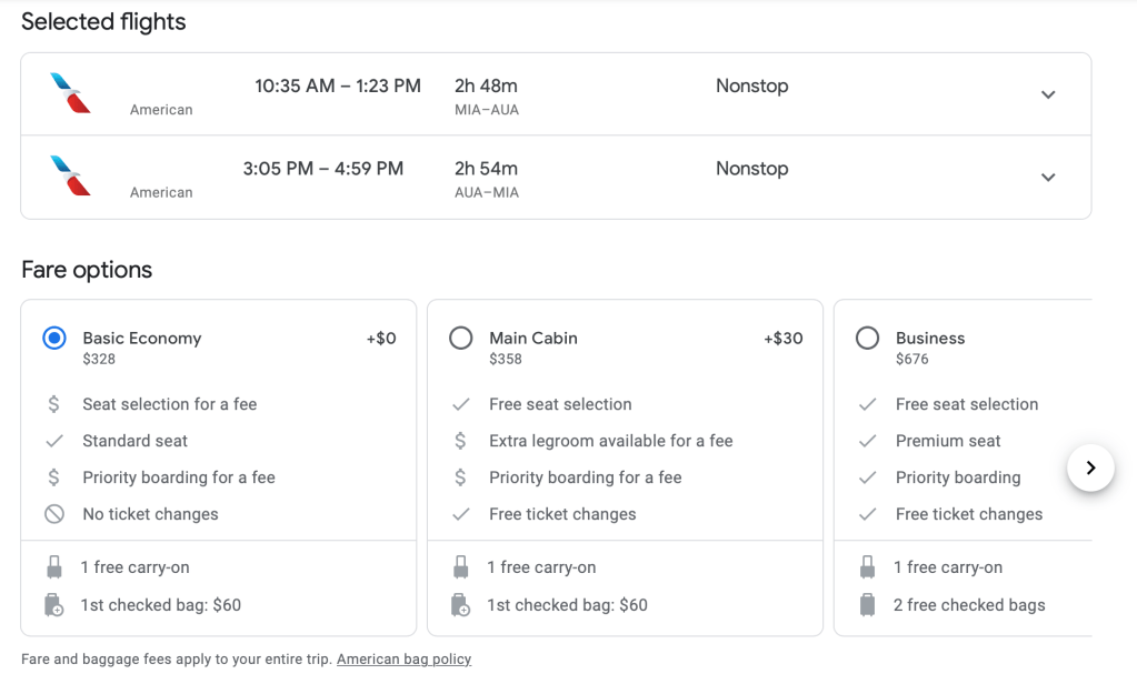 American Airlines cash fare: $328 roundtrip for BASIC ECONOMY…yuck!