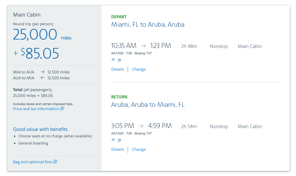 American Airlines (redeeming AA miles) 25,000 + $85.05