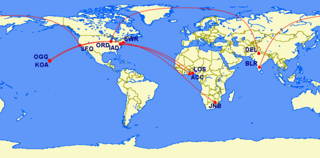 A day later, the airline revealed they were adding 7 new non-stop routes including three to Africa, two to India, and two to Hawaii. The routes included: