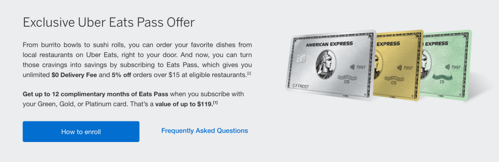 In addition to the new credit for the Gold card, Amex also announced that the Amex Platinum, Amex Green, and Amex Gold [MORE INFO HERE] will also receive access to a complimentary Uber Eats Pass Membership (valid for up to 12 months).