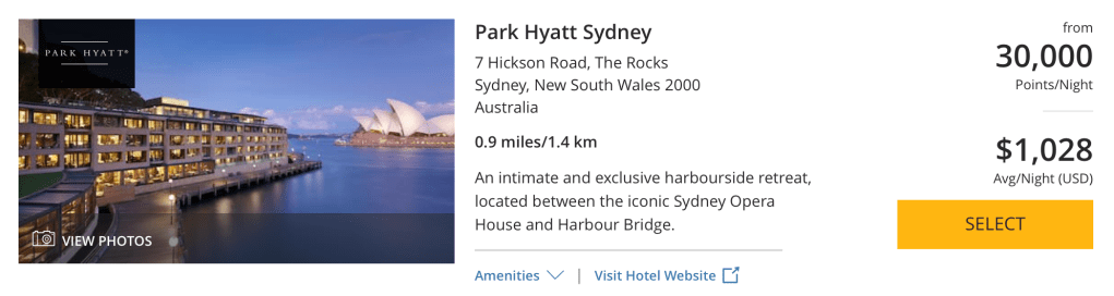 For example, for those of you that love expensive, fancy, and top-tier properties, it doesn’t get any better than the Park Hyatt Sydney, a Category 7 hotel (30,000 points per night). The hotel can retail for over $1000 per night during certain times of the year. However, purchasing 30,000 points through this promotion would cost $576. Obviously, that’s still a lot of money but it’s nearly 50% off.