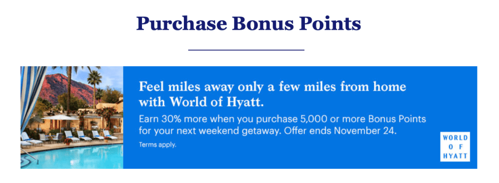 At the moment, World of Hyatt is offering a 30% bonus when you purchase at least 5,000 points or more in one transaction through 24 November 2020.