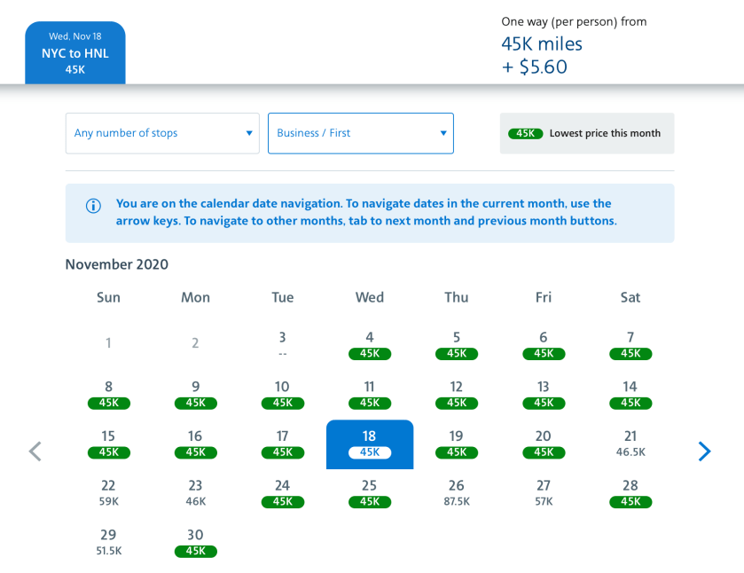 Anyway, to arrive in Hawaii, American Airlines has required no less than 85,000 miles (one-way) for a lie-flat business class seat.