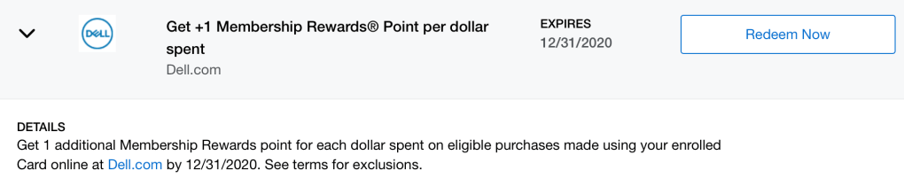 I wanted to make a purchase from Dell Computers and I had two different Amex offers. The offer on the Marriott Bonvoy Card was: